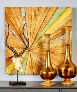 Grayson Lane 29-in H x 73-in W Brown Teak Wood Industrial Wall Accent