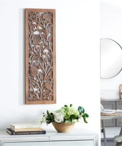 Grayson Lane 36-in H x 12-in W Traditional Floral Brown Wood Wall Accent