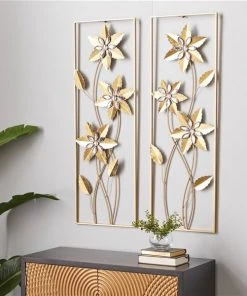 Grayson Lane 36-in H x 14-in W Floral Metal Wall Accent – Set of 2