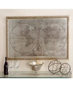Grayson Lane Brown Wood Framed 31-in H x 48-in W Maps Wood Print