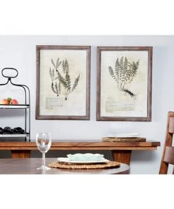 Grayson Lane Brown Wood Framed 27-in H x 20-in W Botanical Wood Print – Set of 2