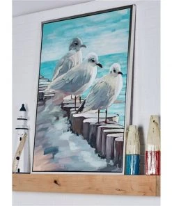 Grayson Lane Silver Wood Framed 47-in H x 36-in W Coastal Birds Canvas Painting