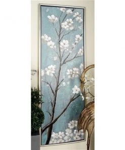 Grayson Lane Silver Wood Framed 47.25-in H x 15.75-in W Floral Canvas Hand-Painted Painting