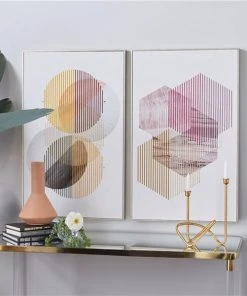 Grayson Lane Silver Wood Framed 32-in H x 20-in W Abstract MDF Hand-Painted Print – Set of 2