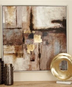Grayson Lane Gold Wood Framed 47.38-in H x 31.5-in W Abstract Ceramic Hand-Painted Painting