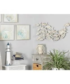 Grayson Lane 17-in H x 45-in W White Wood Coastal Fish Wall Accent