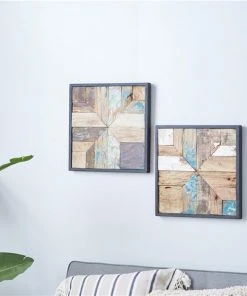 Grayson Lane 17-in x 17-in Brown Teak Wooden Rustic Wall Decor – Set of 2