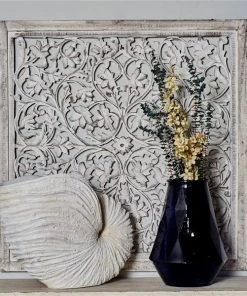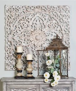 Grayson Lane 36-in x 36-in Mango Wooden Traditional Floral Wall Decor White