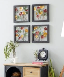Grayson Lane 14-in x 14-in Multicoloured Metal Traditional Floral Wall Decor – Set of 4