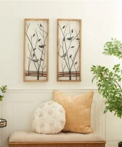 Grayson Lane 14.5-in x 42-in Black Metal Farmhouse Floral Wall Decor – Set of 2