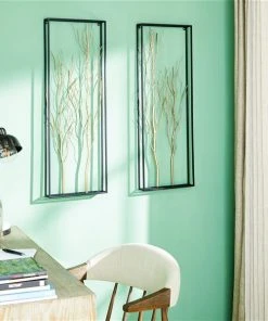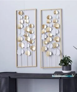 Grayson Lane 12-in x 33.5-in Gold Metal Modern Floral Wall Decor – Set of 2