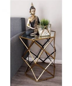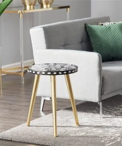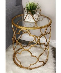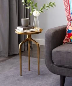 Grayson Lane Gold Aluminum and Granite/Marble Round End Table