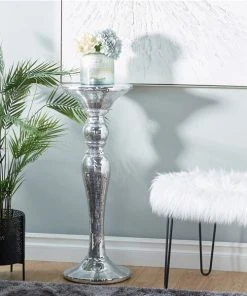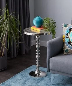 Grayson Lane Glam Silver Polystone and Mirror Round End Table
