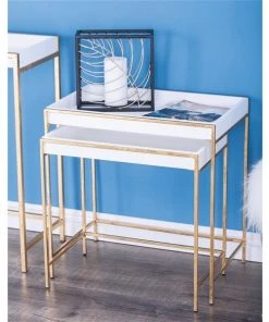 Grayson Lane Gold and White Modern Console Tables – Set of 2