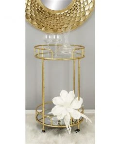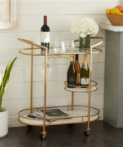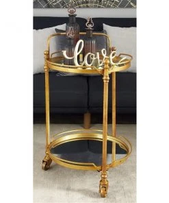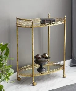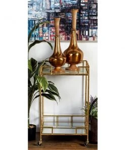 Grayson Lane Gold Metal Base with Galvanized Iron Top Kitchen Carts – 42-in x 14.2-in