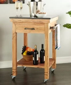 Grayson Lane Brown Granite Base with Granite Top Kitchen Carts – 42.15-in x 29.75-in