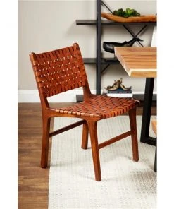 Grayson Lane Brown Leather and Teak Contemporary Dining Chair