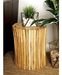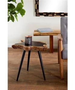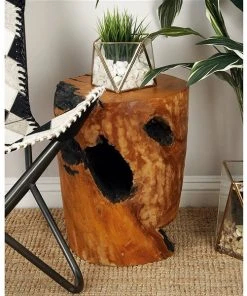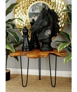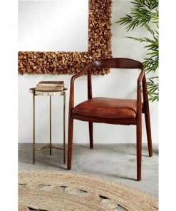 Grayson Lane Brown Leather and Teak Contemporary Dining Chair with Arms and Wooden Frame