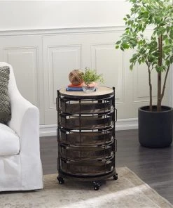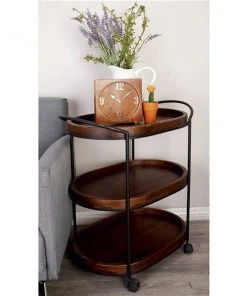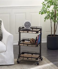 Grayson Lane Brown Metal Base with Galvanized Iron Top Kitchen Carts – 39.25-in x 22-in