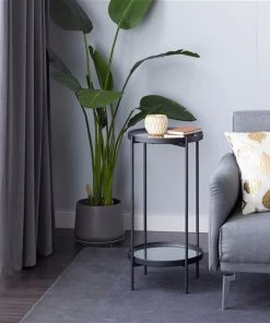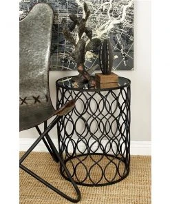 Grayson Lane Contemporary Black Metal with Glass Round End Table