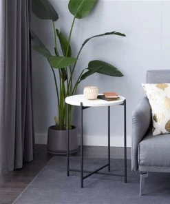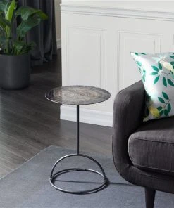 Grayson Lane Contemporary Black Granite/Marble Round End Table