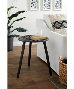 Grayson Lane Contemporary Black Metal and Wood Round End Table