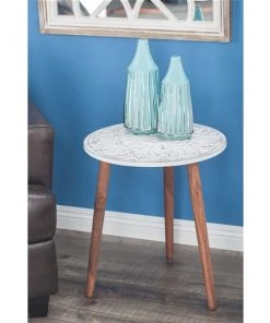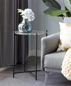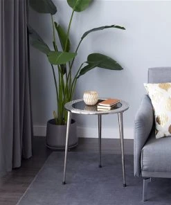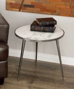 Grayson Lane Contemporary Silver Granite/Marble Round End Table