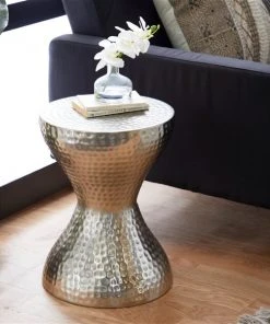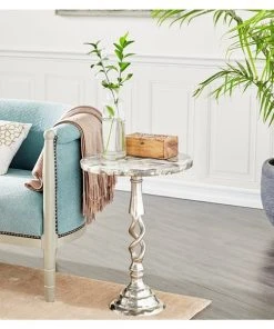 Grayson Lane Contemporary Silver Aluminum with Glass Round End Table
