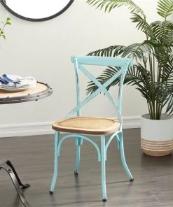Grayson Lane Farmhouse 18-in W Distressed Blue Iron and Rattan Dining Chair