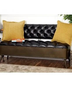 Grayson Lane Industrial Mahogany Brown/Coal Black Accent Bench