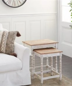 Grayson Lane White Mango Wood Rectangular End Table – Set of 2
