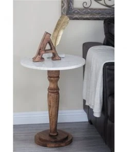 Grayson Lane White Granite/Marble and Mago Wood Round End Table