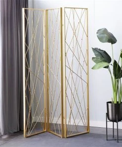 Grayson LaneĀ 3-Panel Gold Metal Folding Modern Style Room Divider