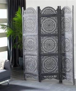 Grayson LaneĀ 3-Panel Black Wood Folding Eclectic Style Room Divider