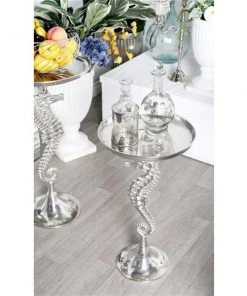 Grayson LaneĀ 29-in xĀ 16-in Silver Aluminum Coastal Round End Table with Seahorse Sculpture