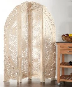 Grayson Lane 4-Panel White Wood Folding Eclectic Style Room Divider