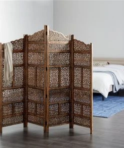 Grayson Lane 4-Panel Gold Wood Folding Traditional Room Divider