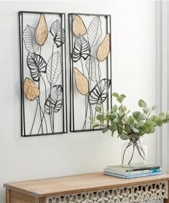 Grayson Lane 12-in x 29.5-in Black Metal Contemporary Floral Wall Decor – Set of 2