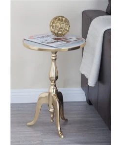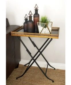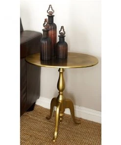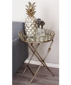 Grayson Lane Traditional Gold Brass Iron with Mirror Round End Table