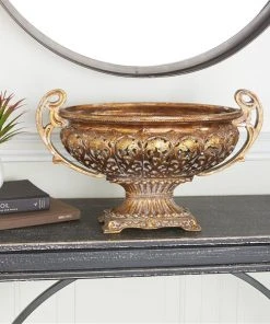 Grayson Lane Traditional Decorative Bowl – Gold Resin – 12-in x 19-in