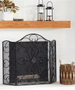 Grayson Lane Traditional Fireplace Screen – Black Metal – 36-in x 49-in