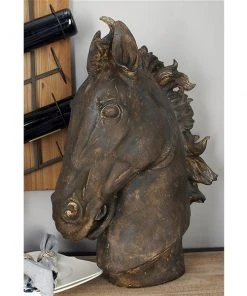 Grayson Lane Traditional Sculpture – Brown Poly Stone Horse – 25-in X 22-in