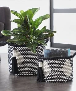 Grayson Lane Traditional Storage Basket Black Polyester – Set of 2