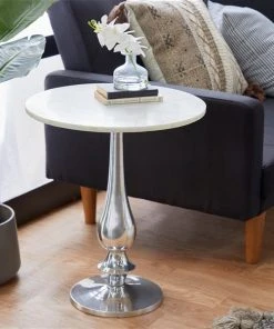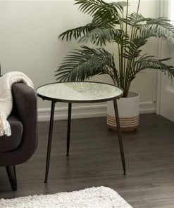 Grayson Lane Traditional White Granite/Marble Round End Table