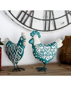 Grayson Lane Turquoise Polystone Rooster Sculpture – Set of 2
