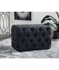 Grayson Lane Vintage Black Tufted Cushioned Rectangle Ottoman