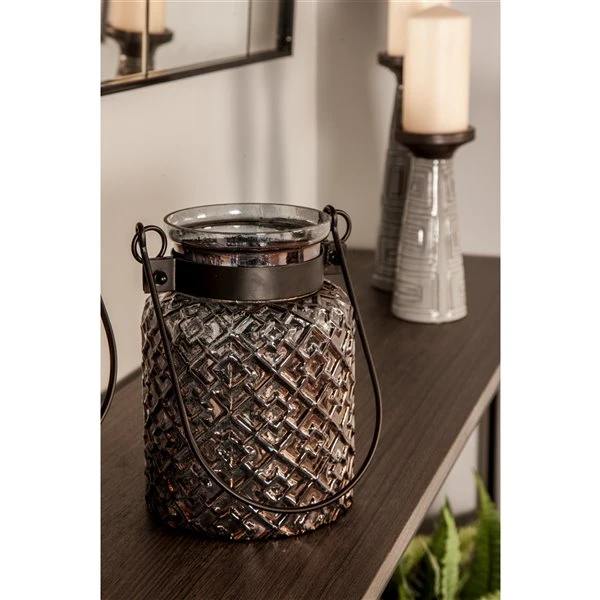 Grayson Lane 10-in x 6-in Traditional Black Glass Hurricane Candle Holder