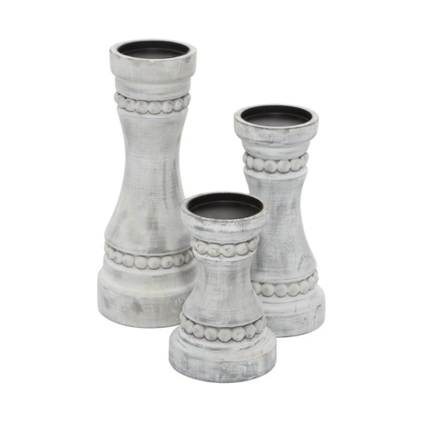 Grayson Lane 1-Candle Grey Wood Pillar Candle Holder – Set of 3