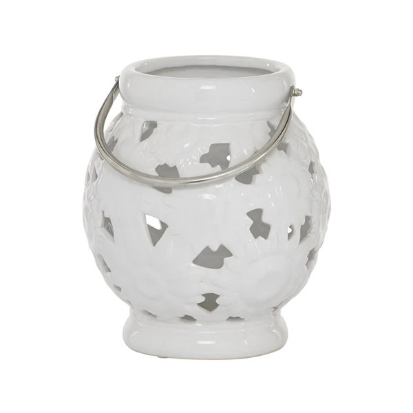 Grayson Lane 1 Candle White Ceramic Lantern Candle Holder