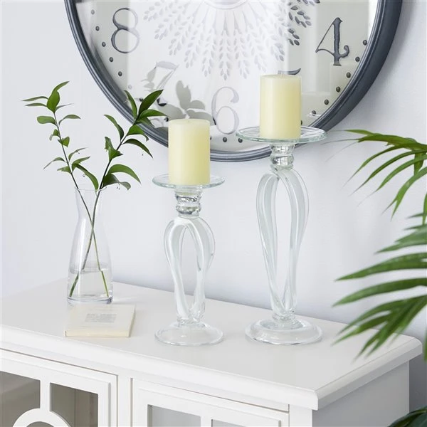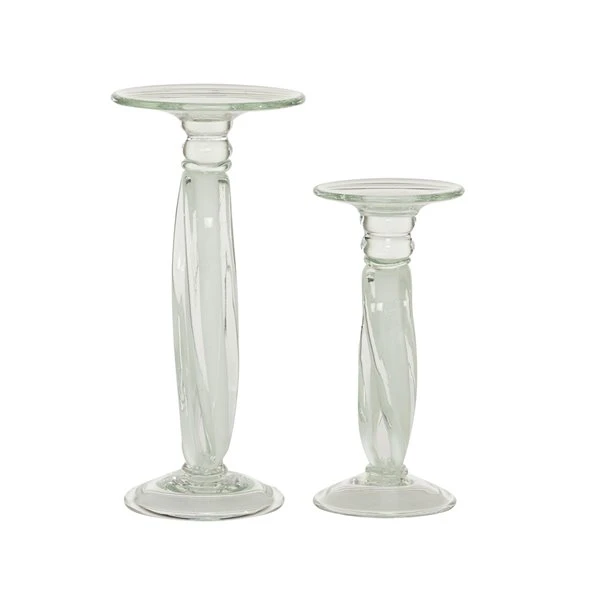 Grayson Lane 1-Candle White Glass Pillar Candle Holder – Set of 2
